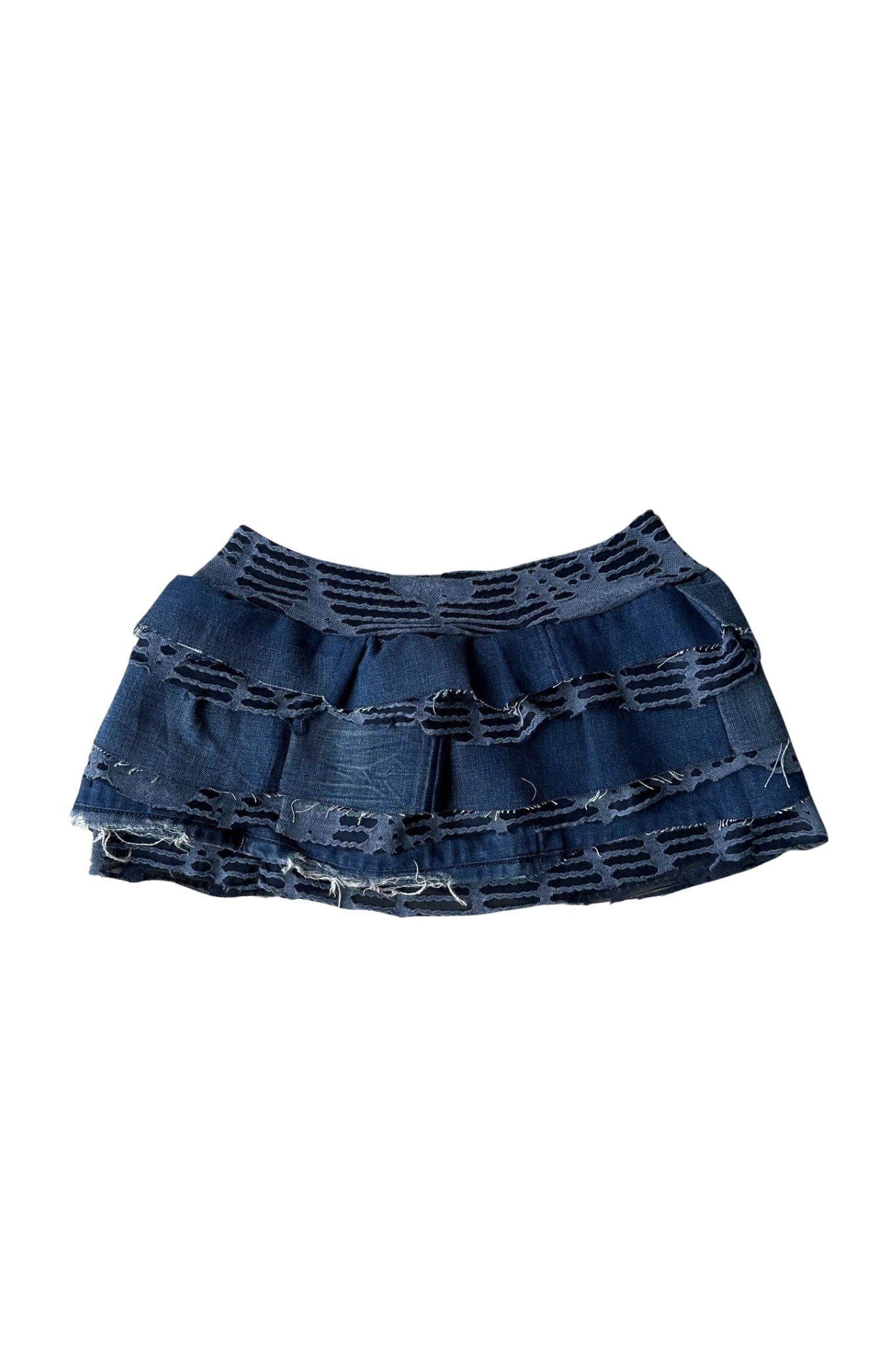Our Outcast mini skirt is handcrafted using a blend of Levi's & Diesel jeans paired with delicate lace.