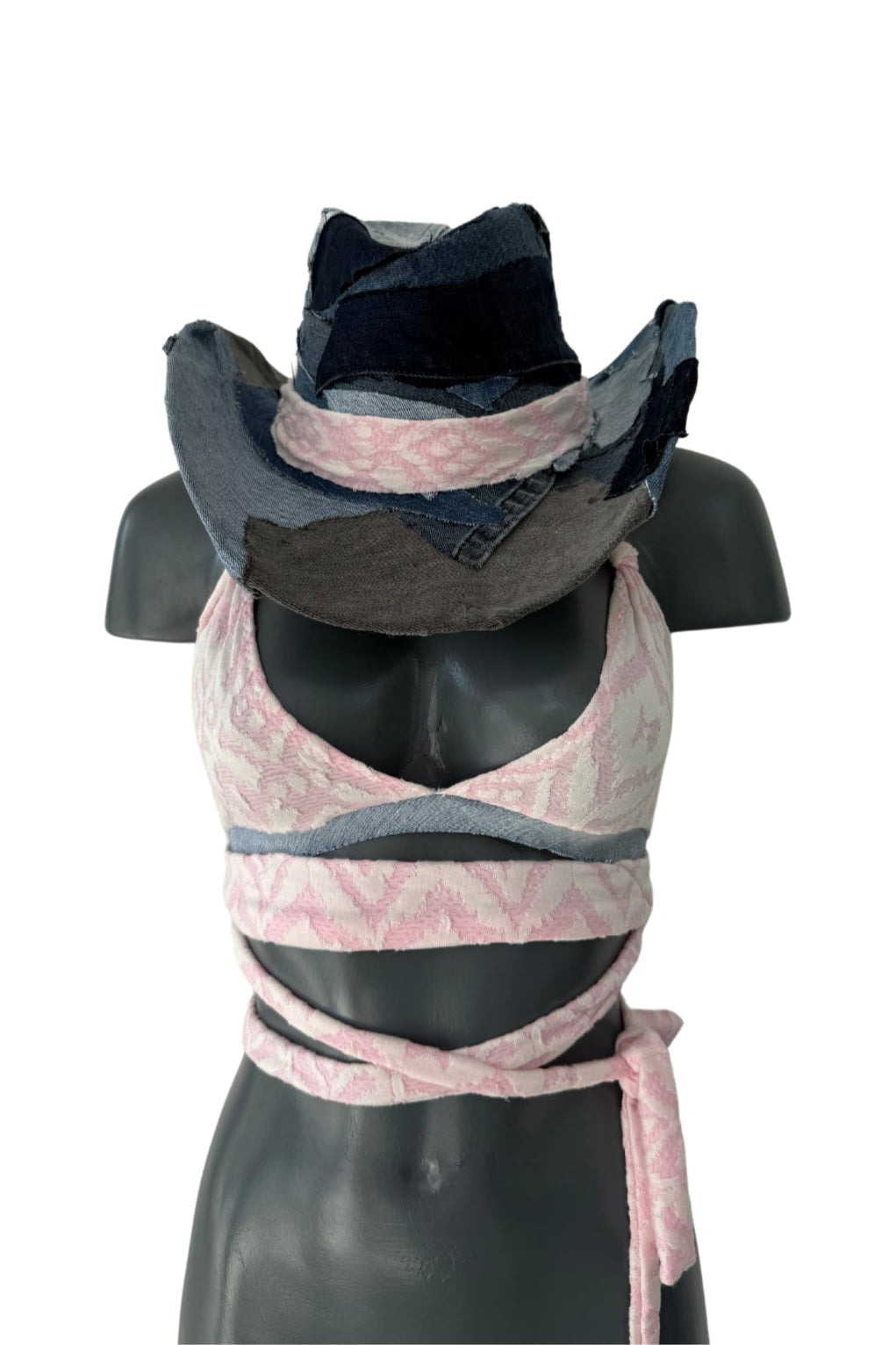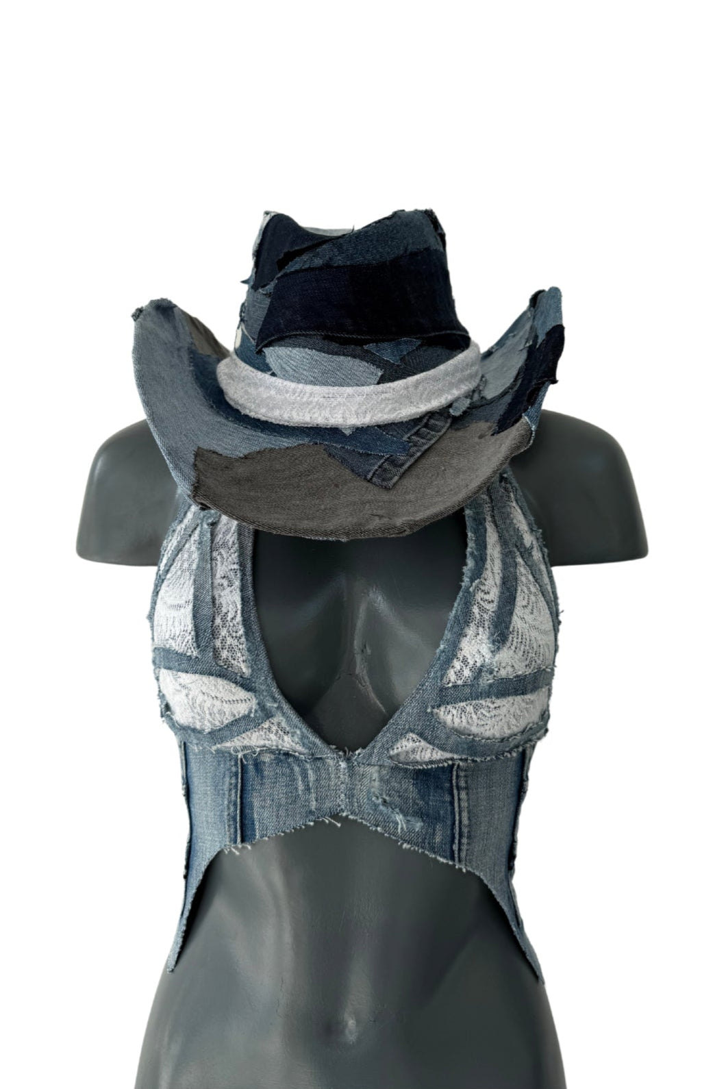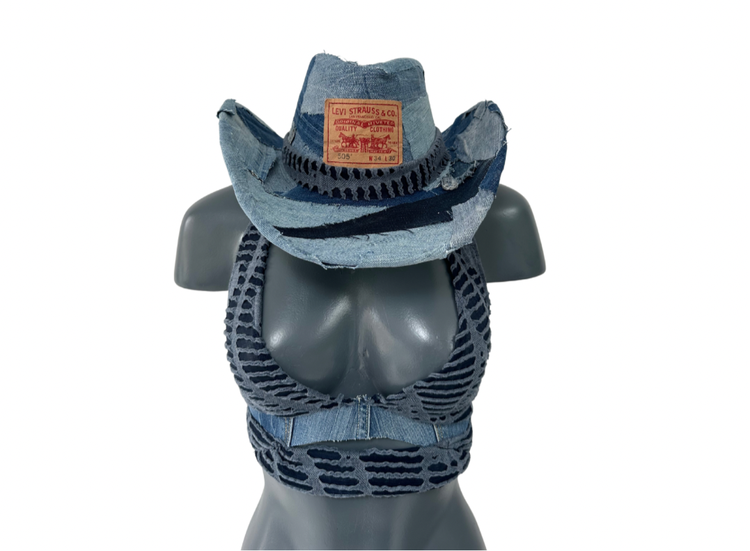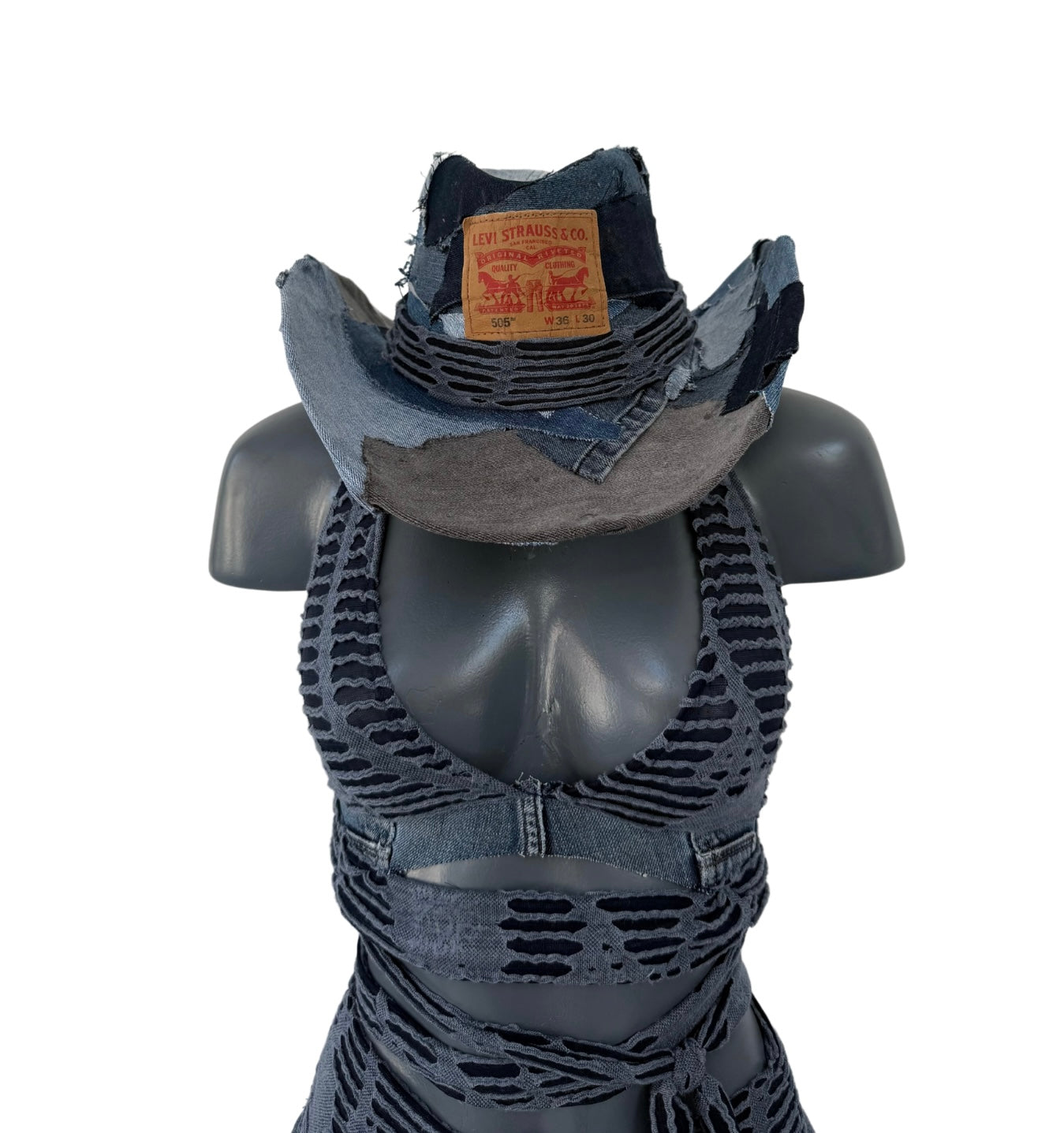 Our Denim Patchwork Cowboy Hats are handcrafted with a unique mix of repurposed Levi & Diesel denim in various washes & textures, creating a one-of-a-kind patchwork design that makes every piece completely unique. We also will add a matching fabric detail of your choice pulled straight from our signature outcast & fusion setsੈ✩‧₊˚