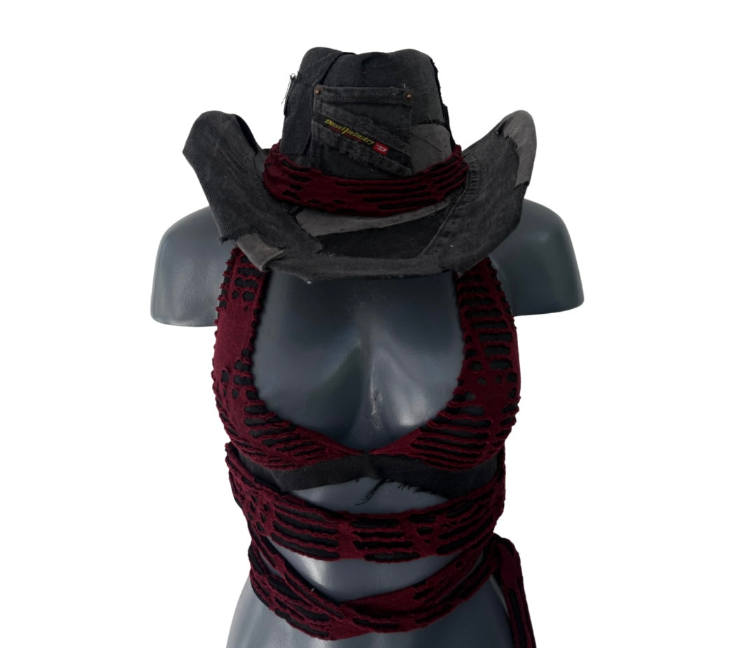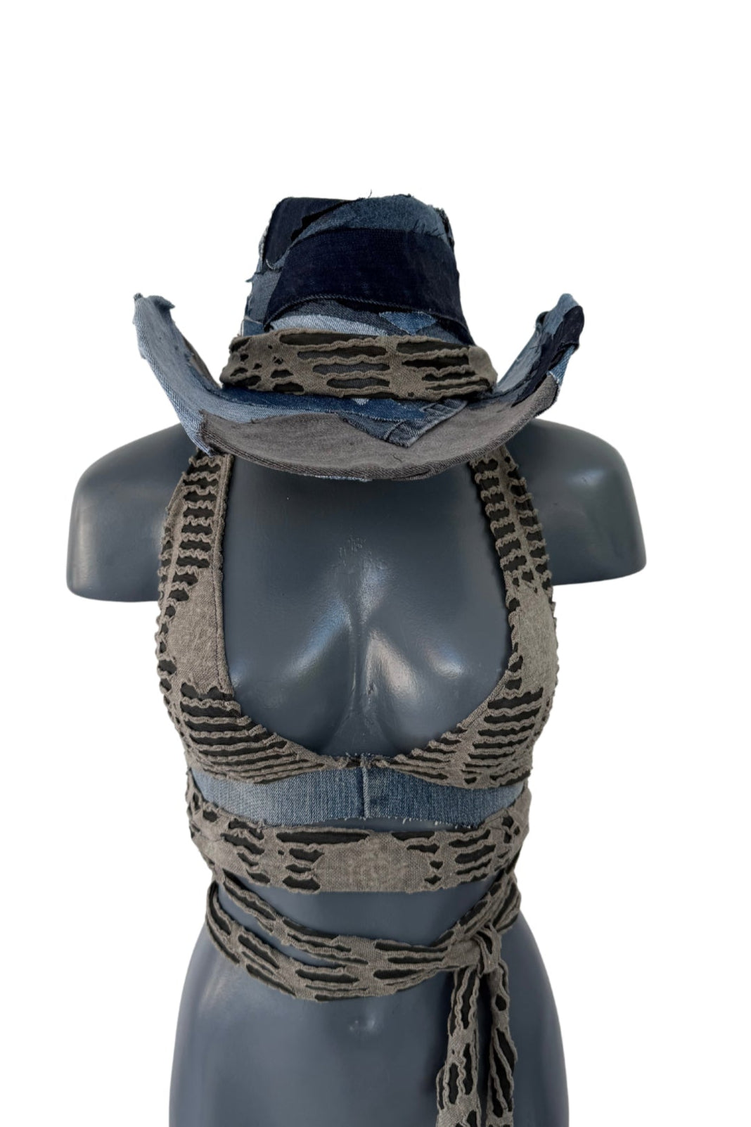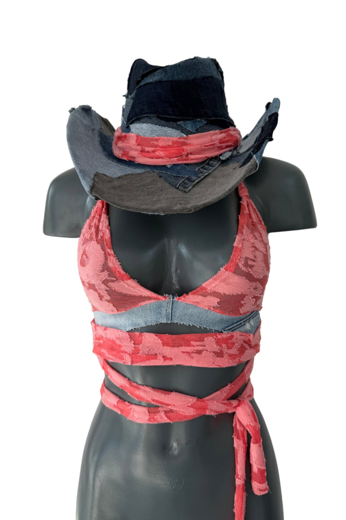 Our Denim Patchwork Cowboy Hats are handcrafted with a unique mix of repurposed Levi & Diesel denim in various washes & textures, creating a one-of-a-kind patchwork design that makes every piece completely unique. We also will add a matching fabric detail of your choice pulled straight from our signature outcast & fusion setsੈ✩‧₊˚