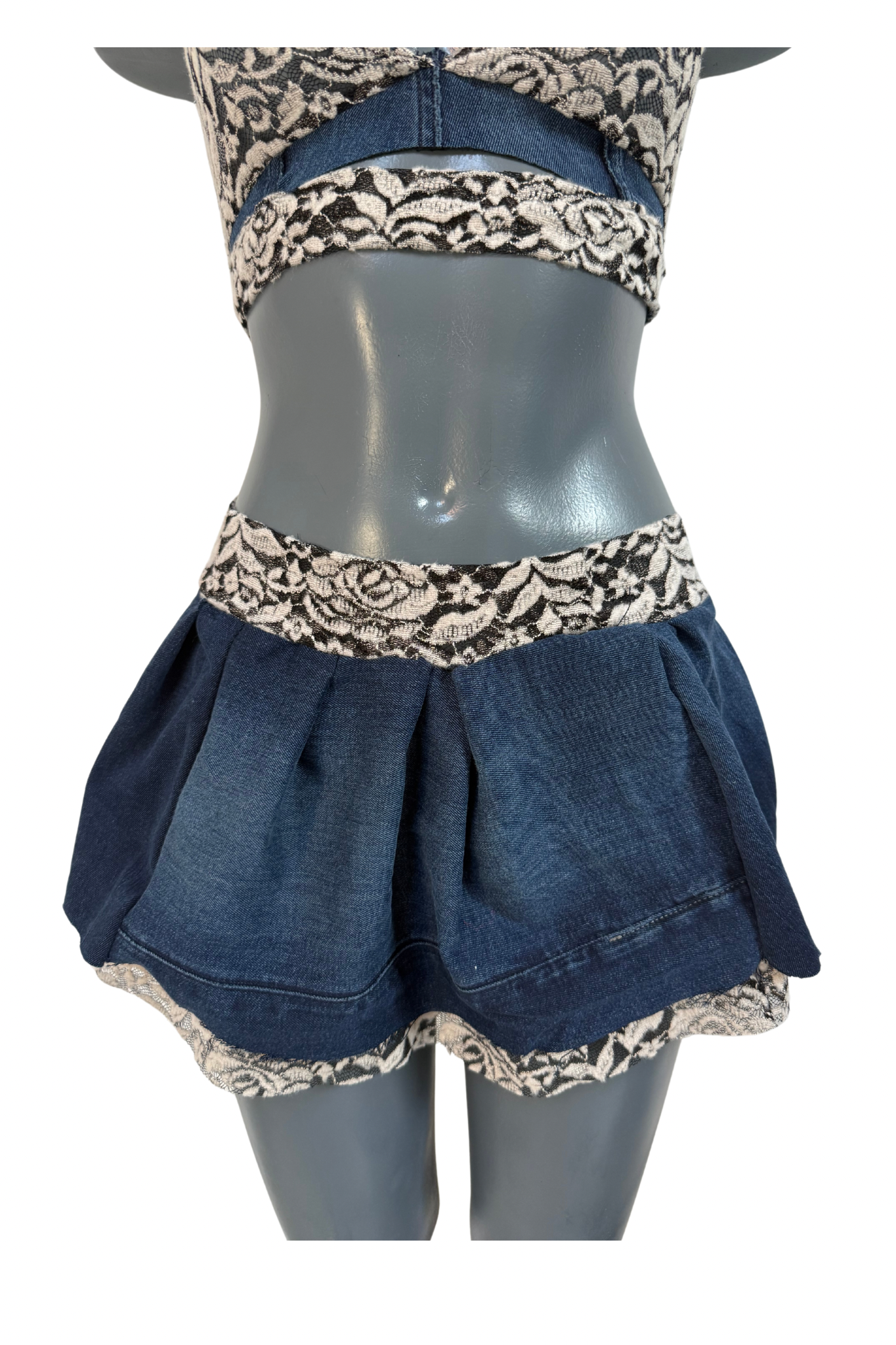Our Fused collection is handcrafted using a blend of Levi's & Diesel jeans paired with delicate lace.