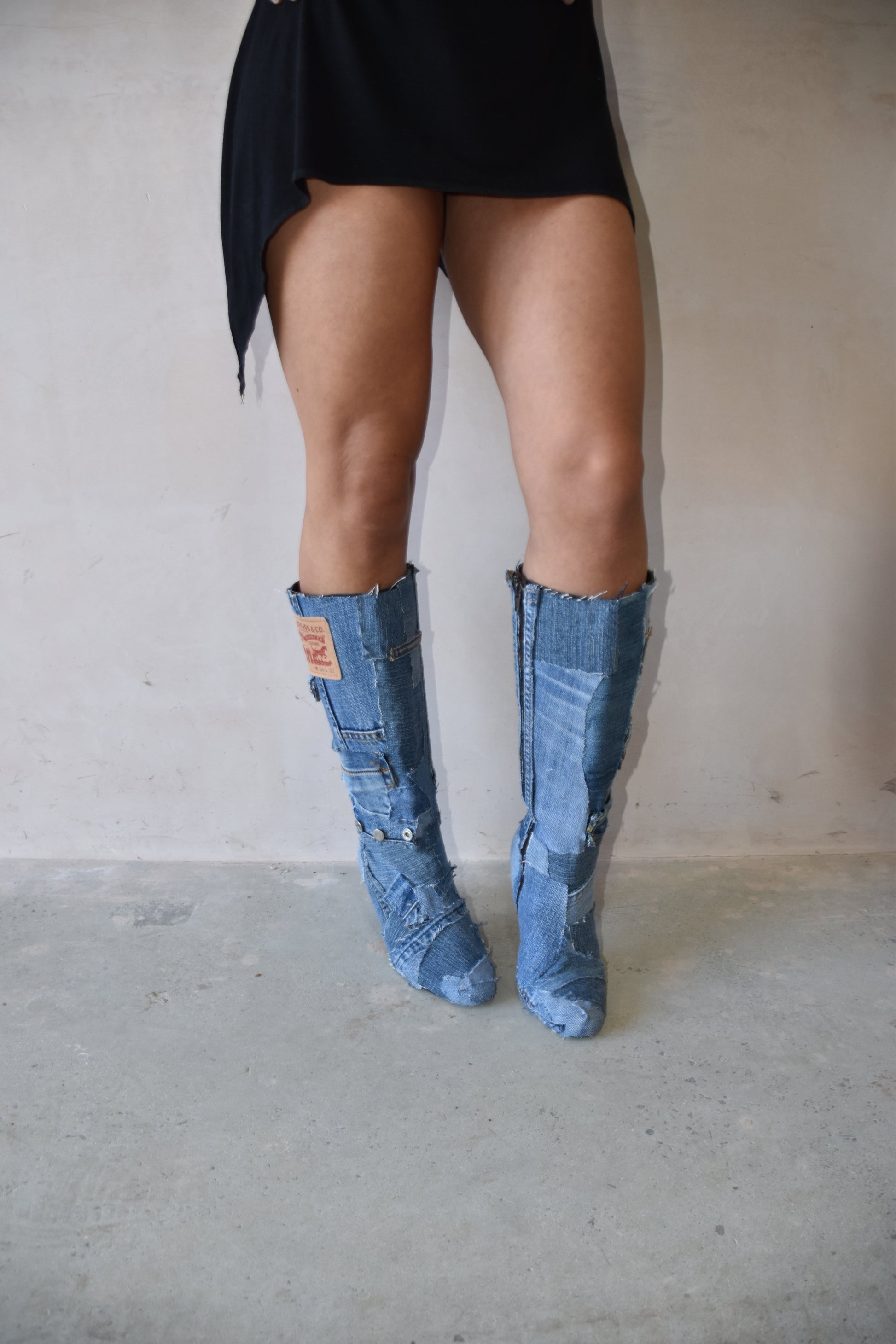 These boots are imperfectly perfect & a 1 of 1 design you won’t find anywhere else. Each pair starts as a vintage boot, carefully sourced and reworked with reclaimed denim for a modern patchwork finish.