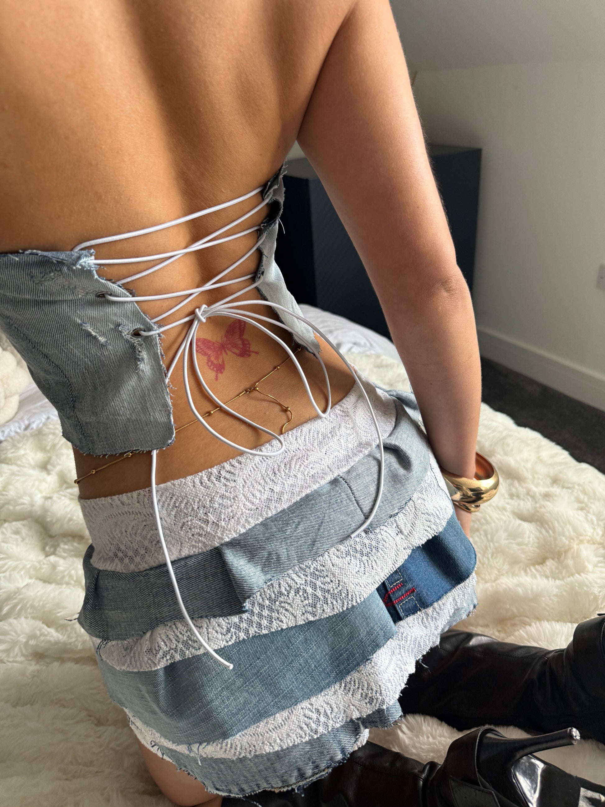 Our Outcast Bralette collection is handcrafted using a blend of Levi's & Diesel jeans paired with delicate lace.